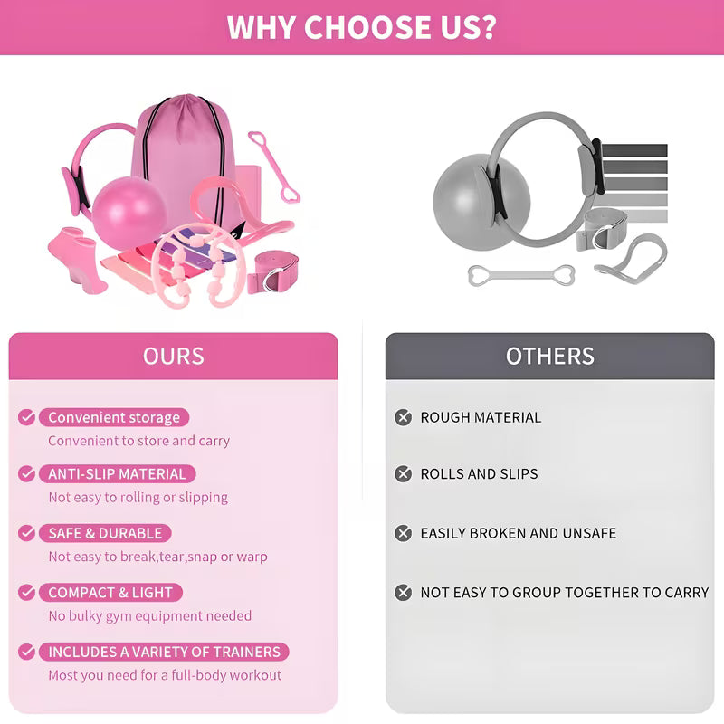 - Complete 14-piece set for Pilates, yoga, and strength training